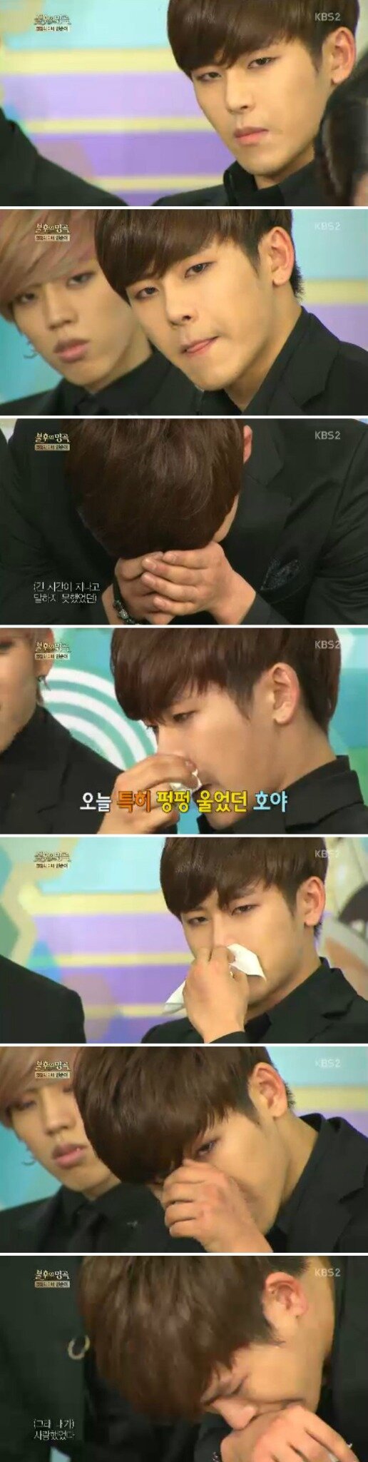اما Dongwoo علق انه لم يرى هويا يبكي بهذه الشدة من قبل